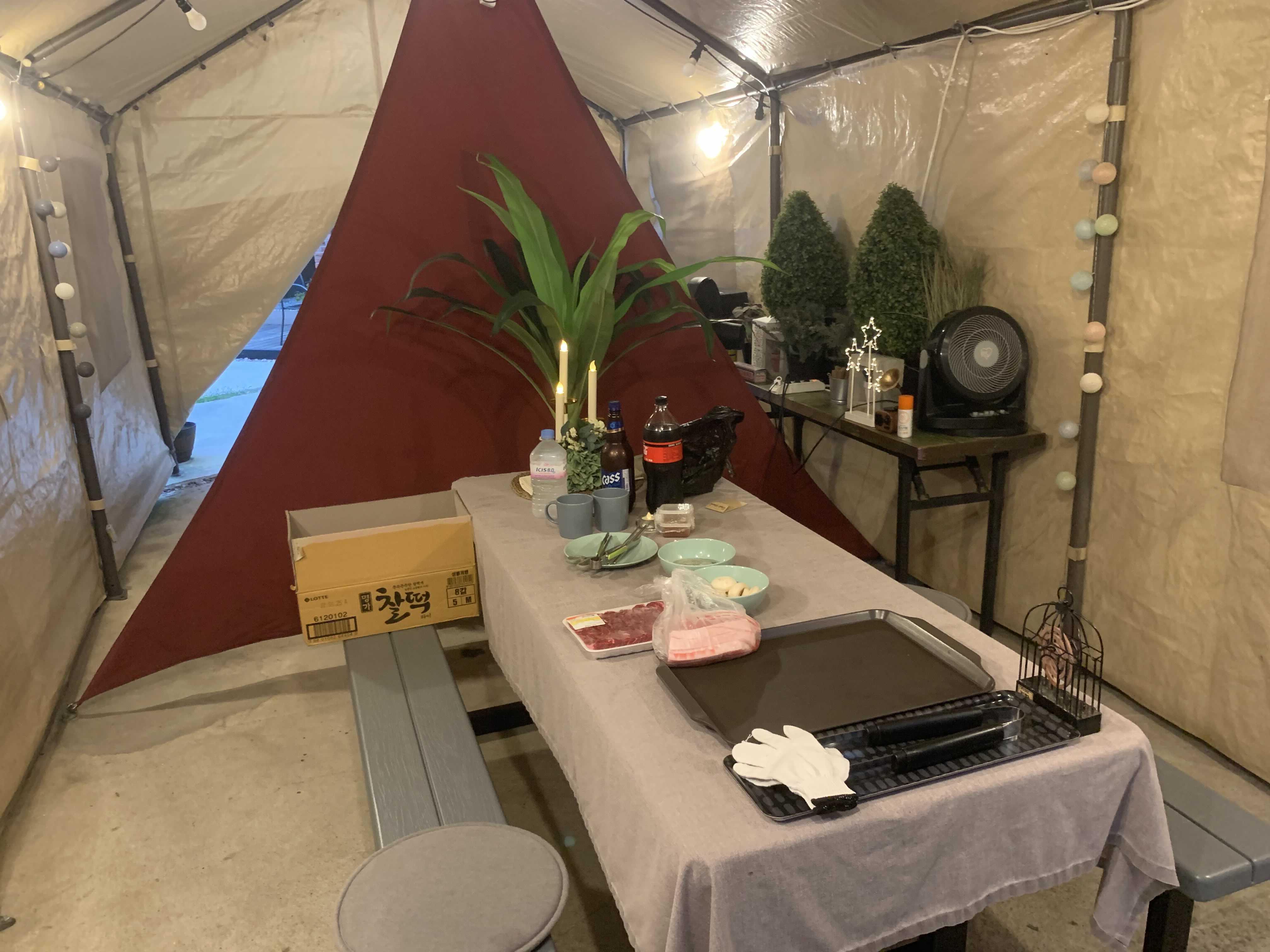 안쪽에 천막이 바베큐장입니다