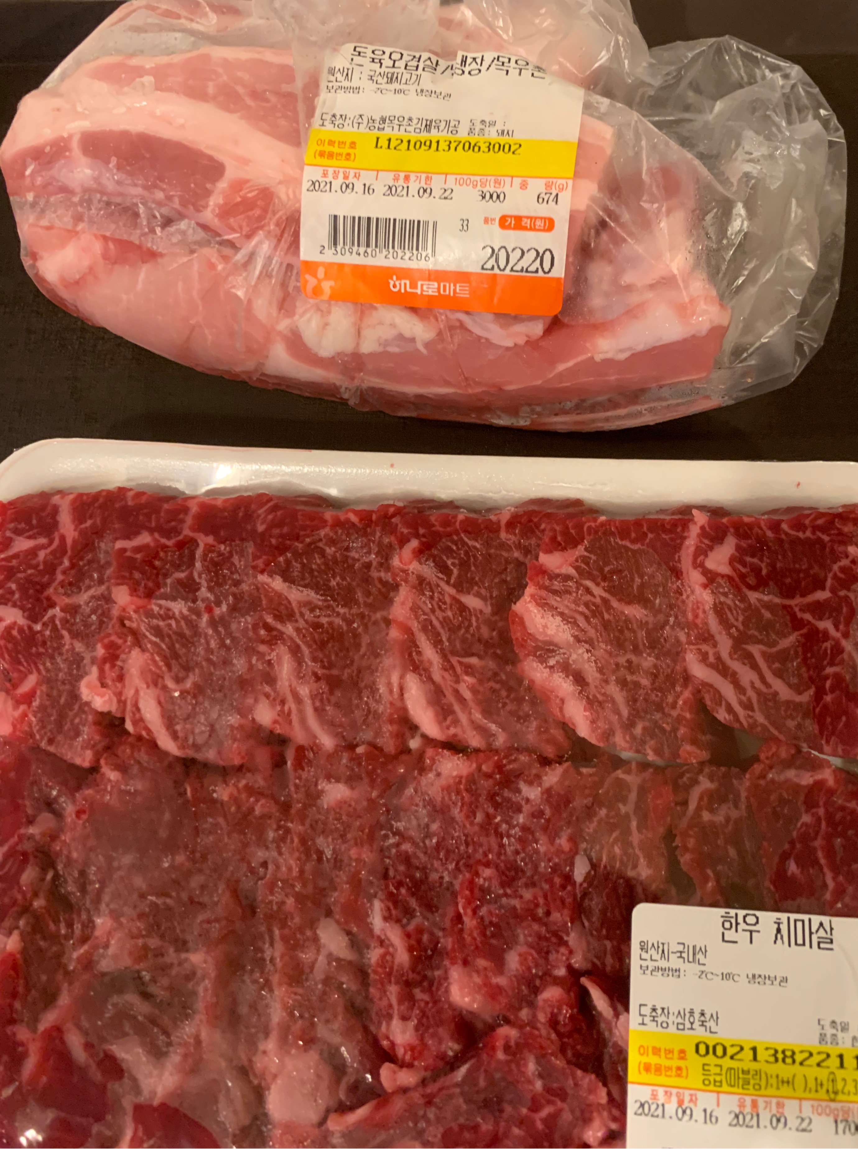 돼지와 소를 같이 즐겼어요