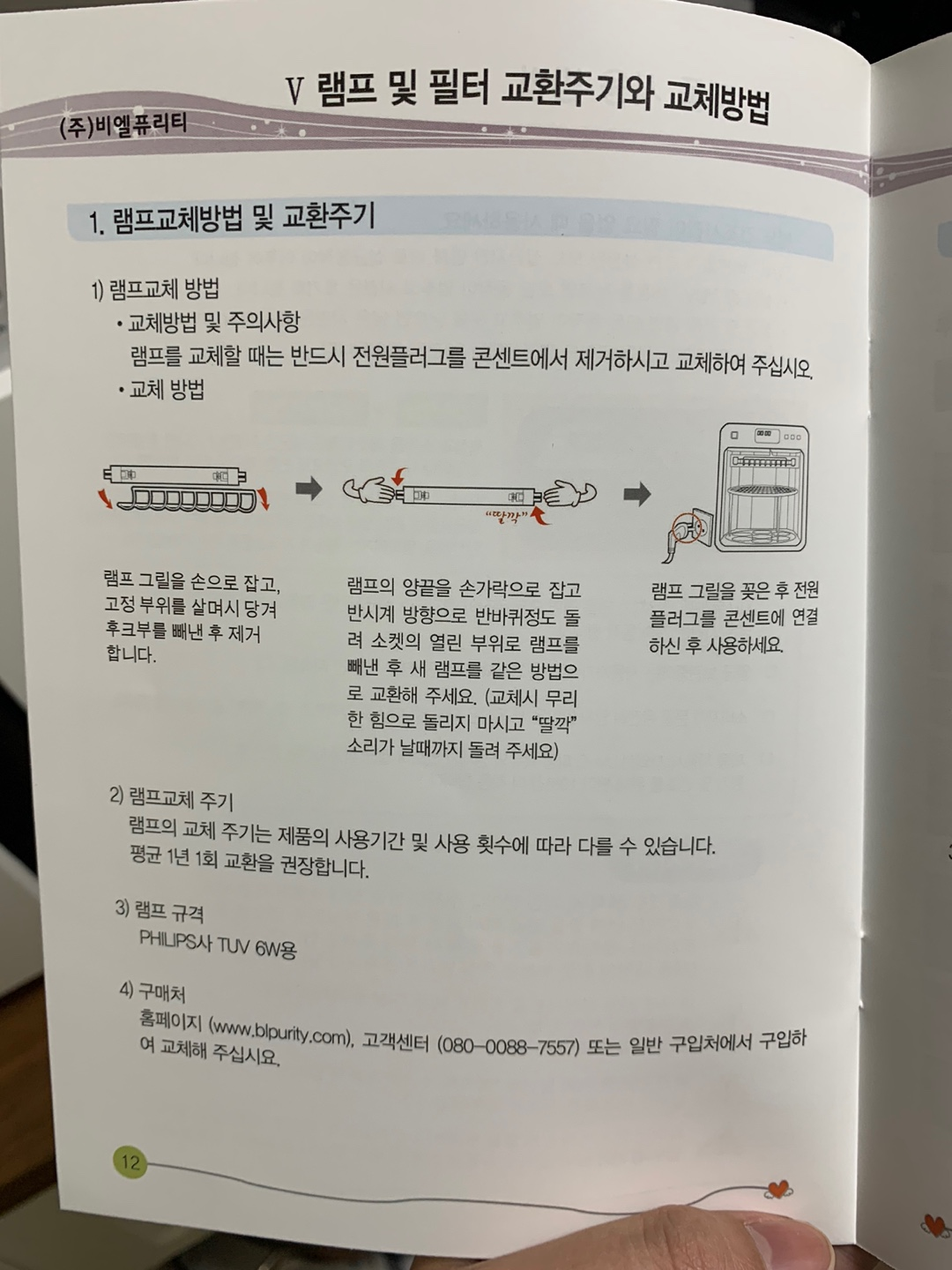 살균램프는 1년 1회 교환을 권장하고 있으며 사용량에 따라 교환 횟수는 달라질 수 있습니다.